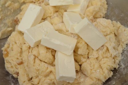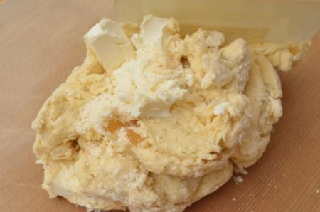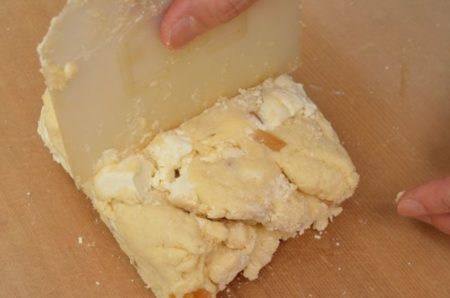 - バターを加え、カードで粉とバターを切り混ぜる。