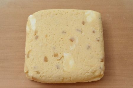 - 生地を厚さ2.5cmくらいの正方形に整える(写真は13~14cm四方)。