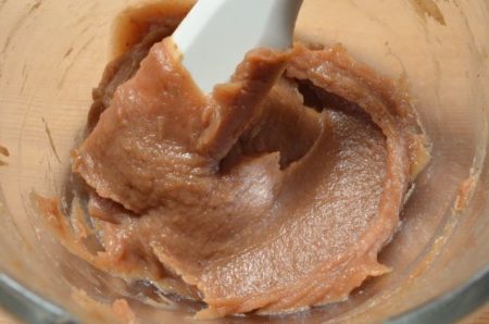- マロンペーストをレンジで20~30秒くらい加熱して柔らかくする。牛乳とラム酒を加えてよく練り合わせる。