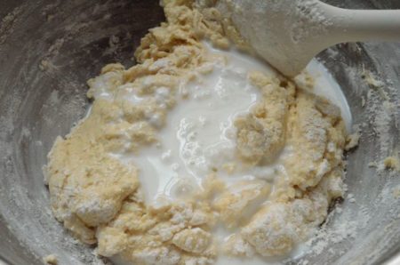 - 牛乳の半量を加えて、同じように混ぜる(水気が残っていても大丈夫)。