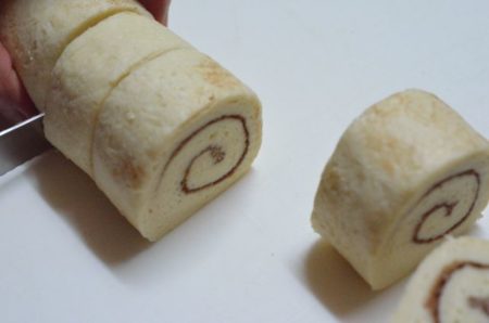 手前からくるくると巻き、ラップに包んで冷蔵庫で30分~1時間休ませる。
