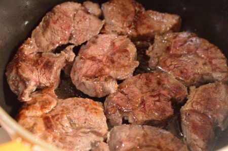 - 肉が煮上がっても煮汁がしゃぶしゃぶしている場合は、肉をバットに取り出して、煮汁だけを強火にかけて煮詰めてください。トロミがついたら肉を鍋に戻し、ひと煮立ちさせてなじませます。