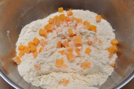 すりおろして加えると、チェダーチーズが生地全体にまんべんなく混ざるので、冷めてもしっとりとした食感と風味が楽しめます。クミンやキャラウェイなど、チェダーに合うスパイスをプラスするのもおすすめです。