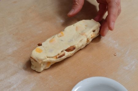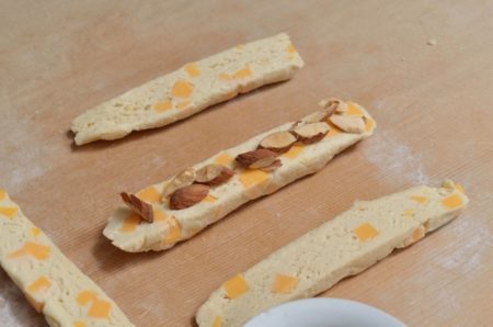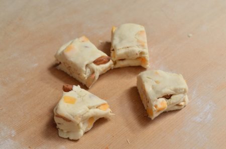 • カットして余った2番生地に、アーモンドを大きめに刻んで加えても。チェダーのナッティーな風味とよく合い、ザクザクした食感も楽しめます。