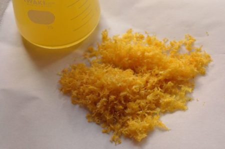 - レモンは皮の表面をすりおろし、果汁を絞る(80㏄くらいあればよい)。