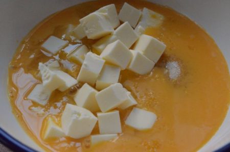 - 湯煎の火加減は中火で、ゆっくりと火を通すようにしてください。バターが溶けてから7~8分で出来上がります。