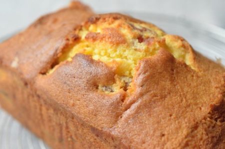 - 170℃に予熱したオーブンで45分~50分ほど焼く(生地の膨らんだ部分を指で押してみて、ふわっとした弾力があれば焼き上がり)。粗熱が取れたら型から出し、ケーキクーラーにのせて冷ます。