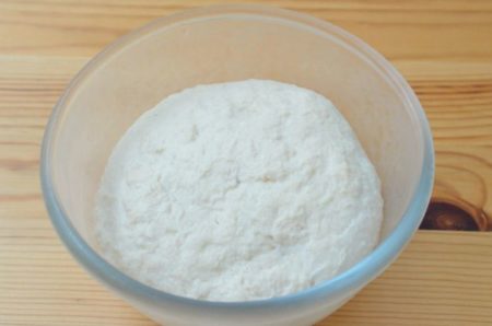 - ボウルに中種の材料を入れてゴムベラで混ぜ合わせ、粉けがなくなってまとまったら、ラップをして室温で12~15時間発酵させる。