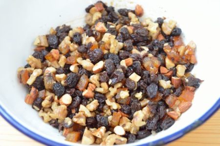- ドライフルーツ&ナッツのフィリングをボウルに合わせておく。