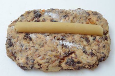 - マジパンを入れる場合は、2等分にして棒状にのばす。