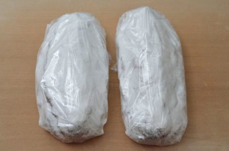 完全に冷めてから、粉砂糖をふるいながらたっぷりとかけ、ラップフィルムで包む。
