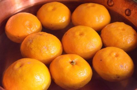 まずは柚子をよく洗ってから大鍋に入れ、たっぷりの水を加えて火にかけます。沸騰したらふつふつ静かに煮立つくらいの火加減で、1時間くらい加熱します。