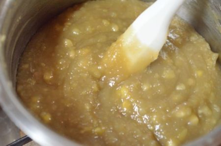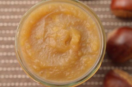 - 上記の分量と作り方で、糖度は44.5度になりました。そのまま食べても美味しい甘さです(ちなみにサバトン社のマロンペーストの糖度は60.6度)。