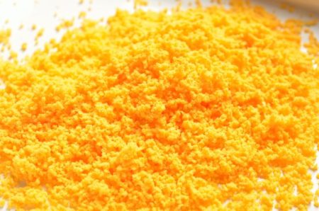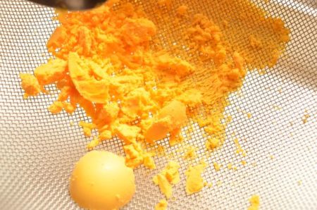 - 残りの黄身をザルで漉して散らす。